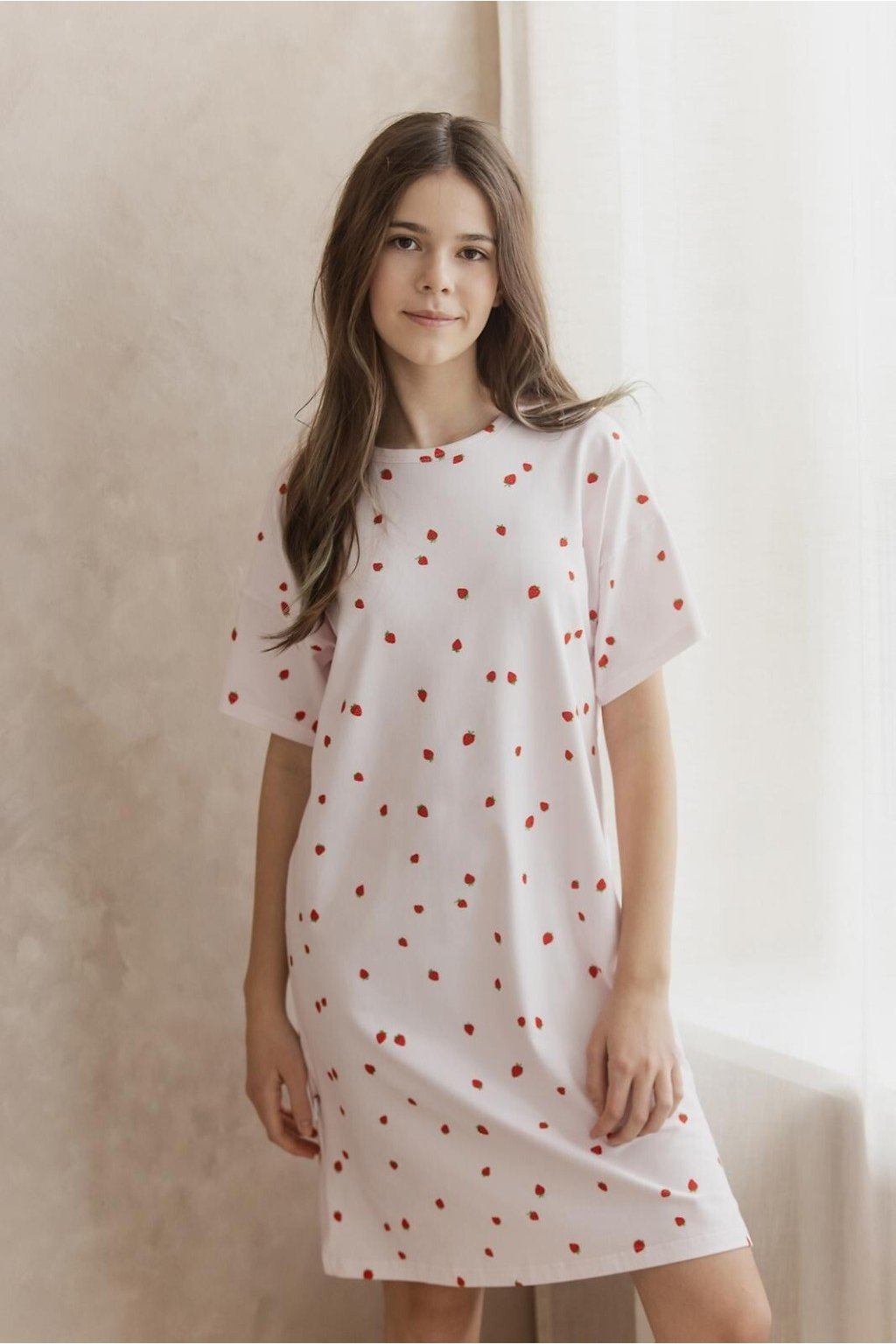 Dívčí bavlněná noční košilka s krátkým rukávem Taro.